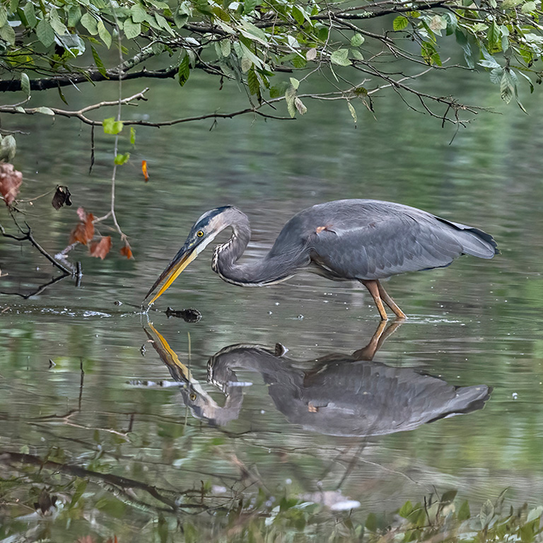 The aquatic habitats include impoundments and woodland streams, supporting numerous species, including Great Blue Herons, Double-crested Cormorants, Osprey, Wood Duck, and more. A diverse offering of terrestrial habitats include upland hardwoods, bottomland hardwoods, mixed pine / hardwood forests, pine plantation, and fields that support Indigo Bunting, numerous woodpecker species, and more.